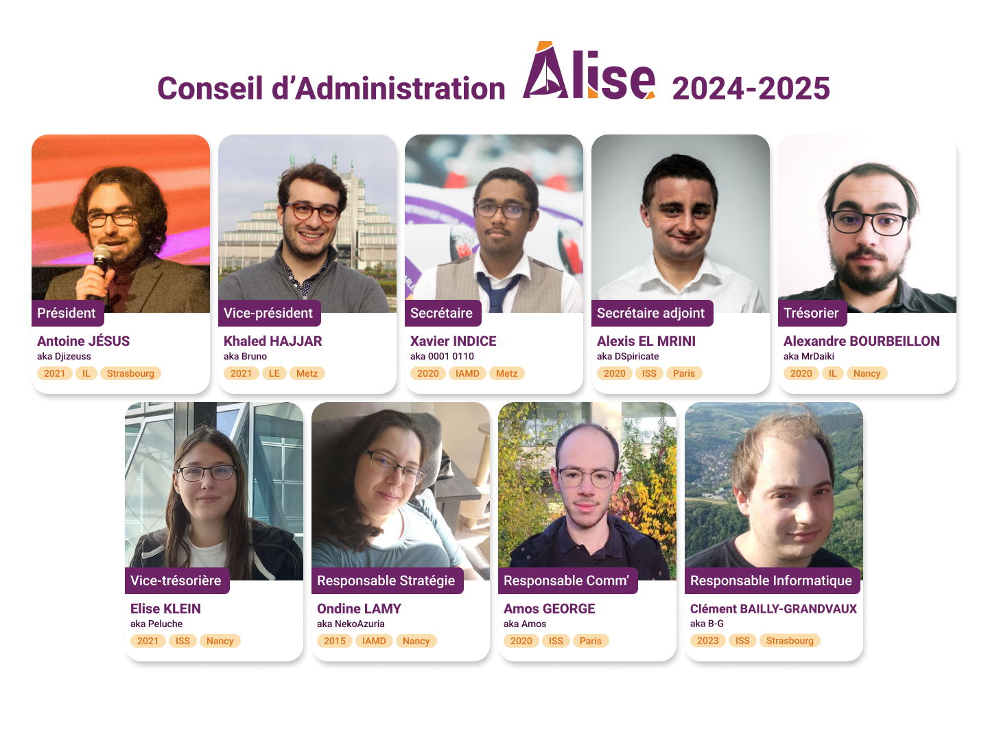 Le CA 2024-2025 d’Alisé comprend neuf membres, découvre-les en images sur notre page du site.